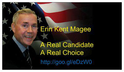 Please help us drive them out of Washington! You can help by making sure Erin’s full name – Erin Kent Magee -- appears on the ballot of your state for the General Election of November 6th, 2012. As Governor, this is your prerogative, and we hope you’ll see it as your duty to help ensure We the People are finally represented.